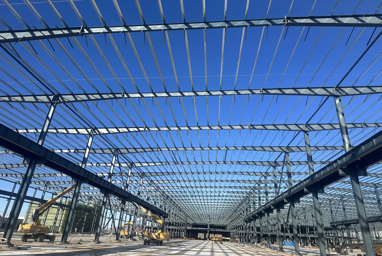 11月29日,鋼構(gòu)分公司緯景儲能智造基地建設(shè)項目鋼結(jié)構(gòu)安裝勝利完成,標志著項目全面進入圍護結(jié)構(gòu)安裝。