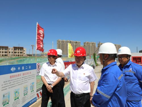 白峰一行首先深入施工現場,聽取了項目負責人關于工程概況、施工進度、現場安全管理及標準化建設等方面的匯報。白峰首先對項目部開展的工作給予了充分肯定,表示中冶德賢公館項目作為公司“二十大重點項目”之一,項目部要以打造包頭本土區域高端住宅翹楚為建設目標,展現出央企應有的社會責任,以高標準、高質量要求建設精品工程。