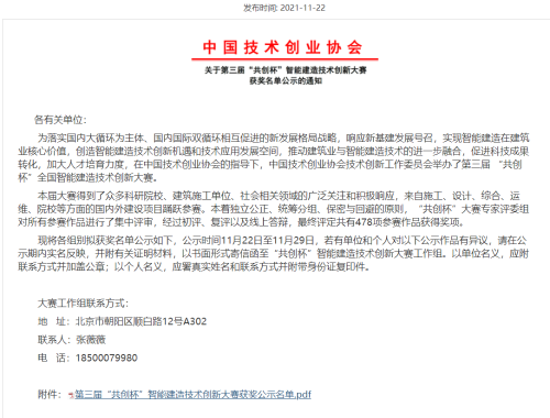 11月30日,由中國技術創業協會技術創新委員會主辦的第三屆“共創杯”智能建造技術創新大賽比賽結果揭曉,中國二冶集團“蘭州新區瑞嶺御景苑項目的BIM技術應用”榮獲施工組一等獎,“基于BIM技術在張家川回族自治縣中醫醫院醫技綜合樓及二期建設項目的施工應用”作品榮獲施工組二等獎。