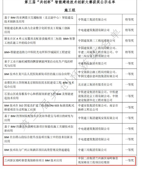 中國二冶集團承建的蘭州新區瑞嶺御景苑保障房項目、張家川中醫醫院醫技綜合樓及二期建設項目積極參與,通過專家初審、復評及論證,在眾多建設施工單位中脫穎而出,最終獲得一、二等獎的好成績。