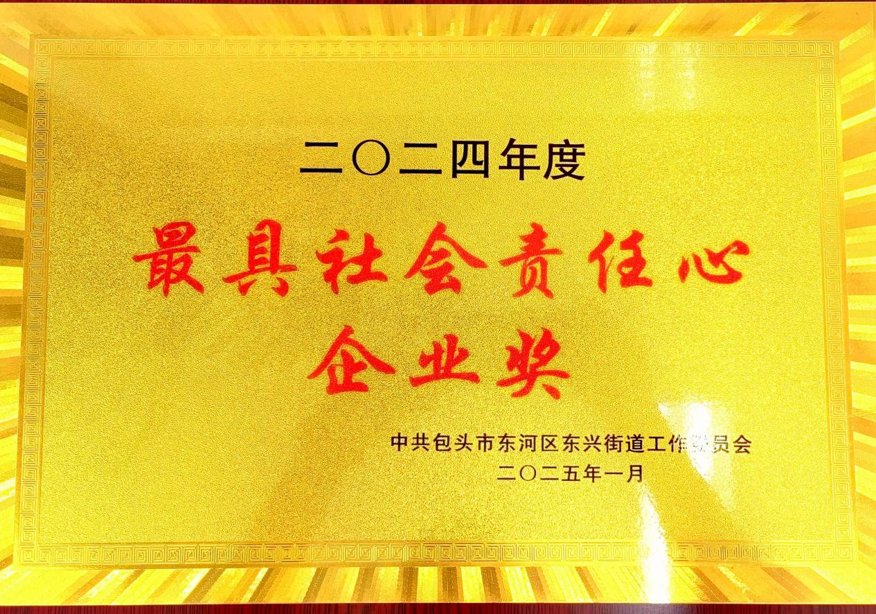 最具社會責任感企業是一項表彰企業在社會責任方面表現突出的獎項。該獎項旨在鼓勵和表彰那些在履行社會責任方面表現卓越的企業。中國二冶包鋁項目部在當地經濟社會高質量發展過程中,始終踐行央企的社會責任,項目管理團隊主動迎難而上。為達到甲方提前通電的要求,項目部參戰人員握指成拳、團結一心,打贏了一場又一場項目攻堅戰,提前十天達到送電條件,受到了包鋁集團的高度認可。同時項目部積極參與包頭市東河區東興街道各類公益活動,在關愛“一老一小”的活動中,組織職工慰問敬老院,為老人們送去陪伴和關懷。同時項目部派安全管理人員為老人講解用電安全知識,提高老年人安全用電意識。