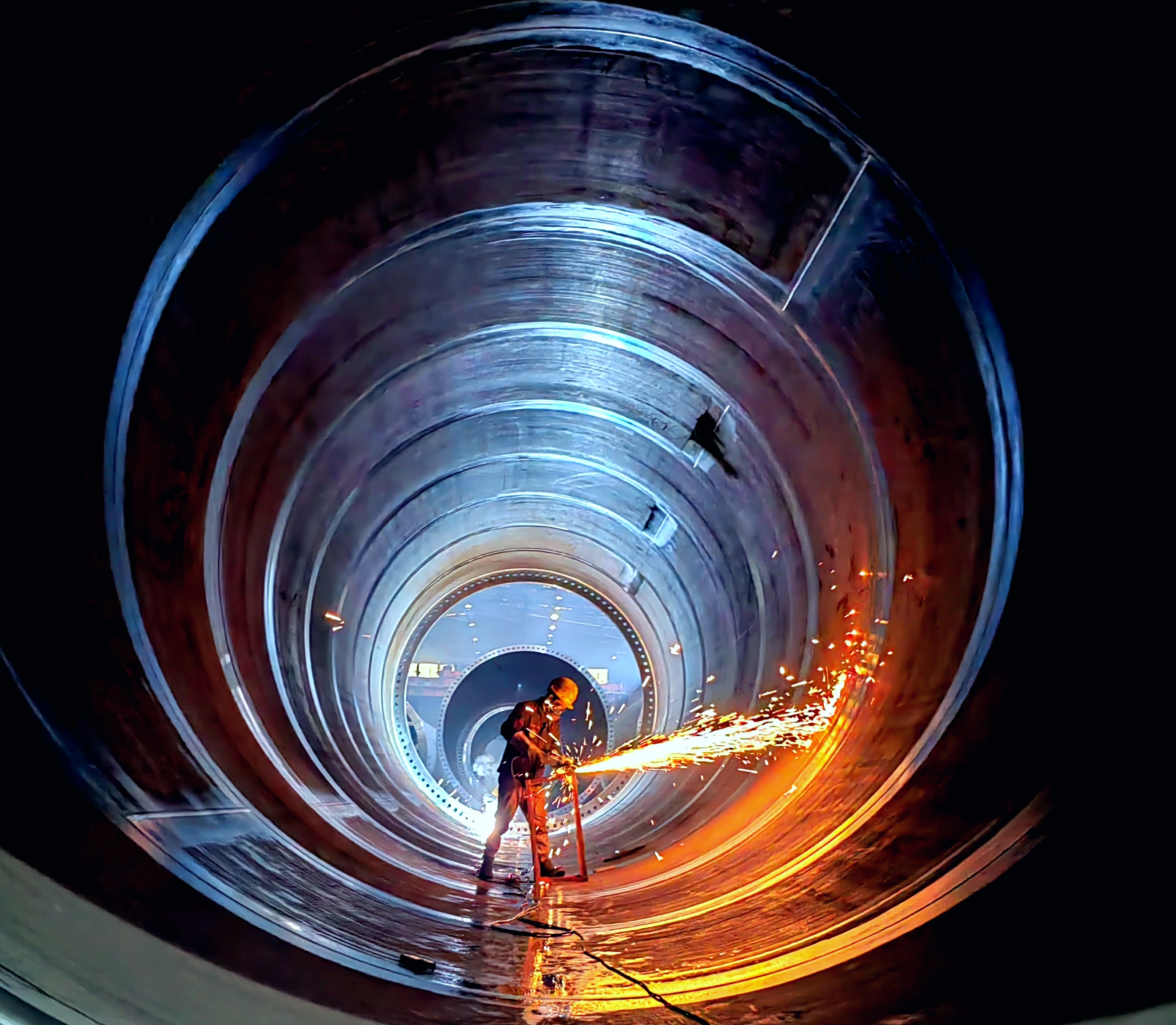 在中國二冶包頭鋁業達茂旗120萬千瓦風電塔筒制作現場,工人們正熱火朝天地生產趕工,不時傳來的機器轟鳴聲、工人呼喊聲、設備運轉聲,成為企業鉚足干勁開新局的生動寫照。