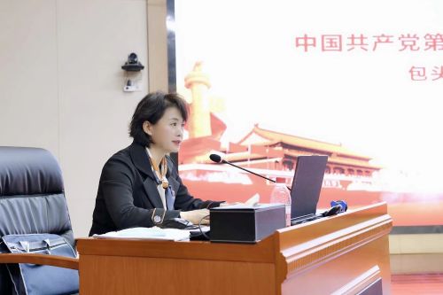 徐俊霞以《永遠跟黨走 奮進新征程》為題,圍繞參會情況、深入學習貫徹黨的二十大精神、深入踐行黨的二十大精神三方面的內容進行專題宣講,宣講結合實際、深入淺出,內涵豐富,思想深刻,全面系統地解讀了黨的二十大精神。徐俊霞在宣講中指出,黨的二十大主題,明確宣示了我們黨在新征程上舉什么旗、走什么路、以什么樣的精神狀態、朝著什么樣的目標繼續前進的重大問題。我們要繼續深刻領悟“兩個確立”的決定性意義,增強“四個意識”、堅定“四個自信”、做到“兩個維護”,自覺在思想上政治上行動上同以習近平同志為核心的黨中央保持高度一致,振奮精神、調優狀態、凝聚力量、把對包頭的摯愛轉化為擔當作為、干事創業的激情,爭當包頭發展的參與者、促進者、推動者,讓黨的二十大精神在包頭落地生根,結出豐碩的果實,共同完成好習近平總書記交給內蒙古的五大任務的“包頭答卷”,為全面建設社會主義現代化國家,全面推進中華民族偉大復興作出包頭貢獻。